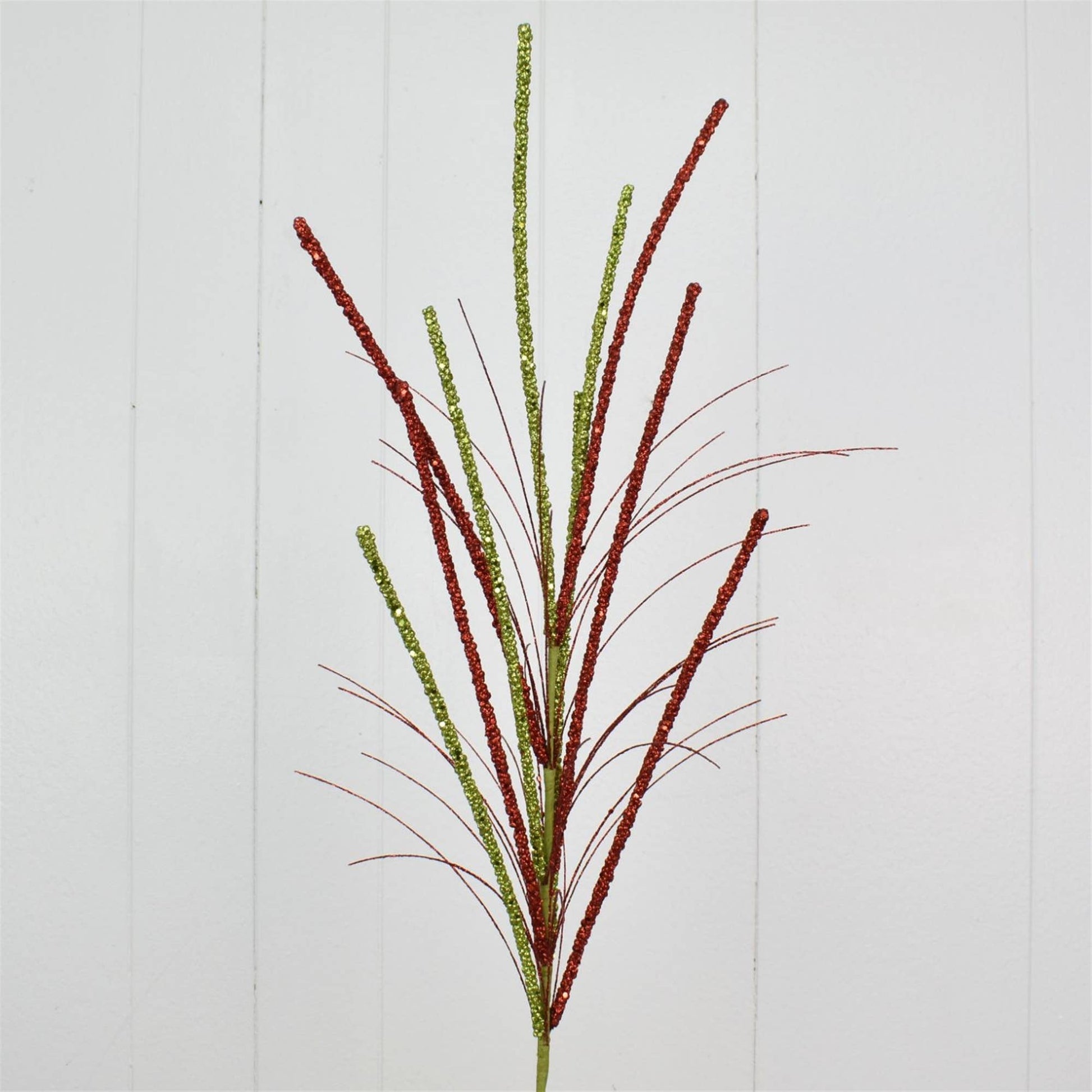 36'' Glittered Millet Grass Christmas Spray- Red/Apple
