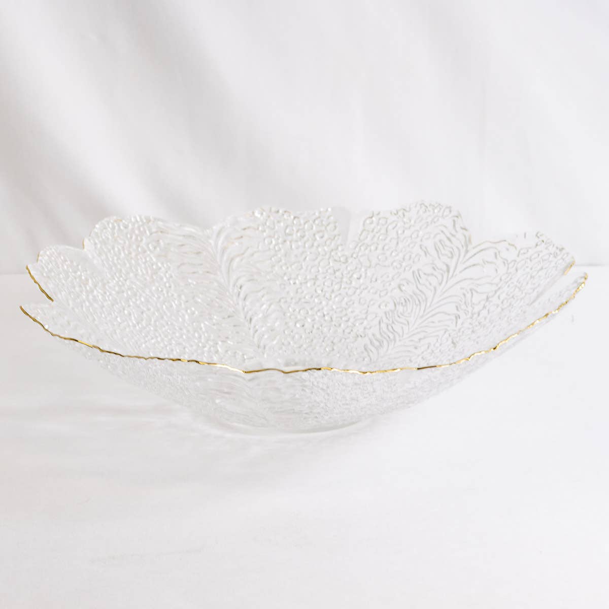 Cannes Glass Serving Bowl Clear/Gold 13"