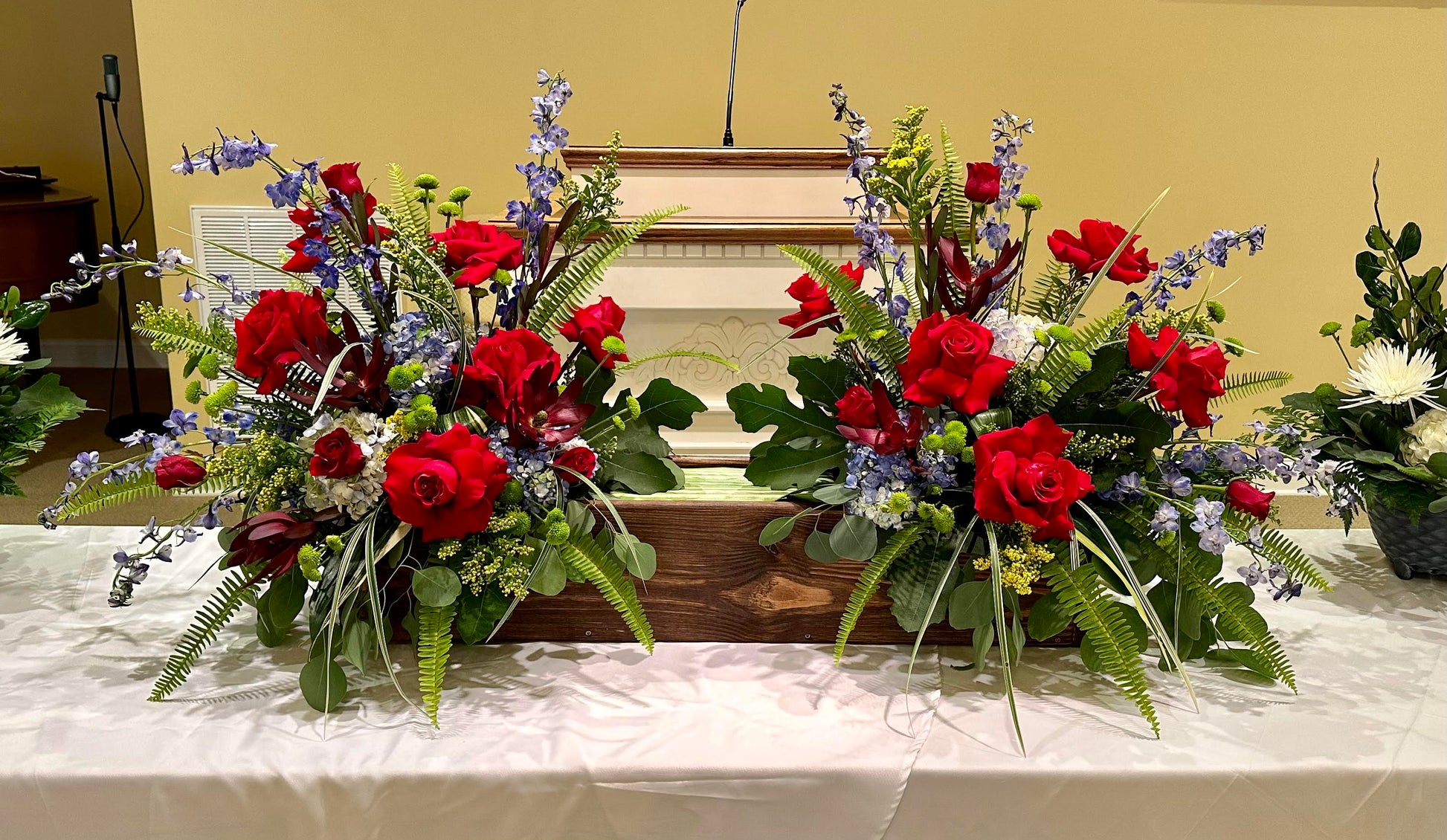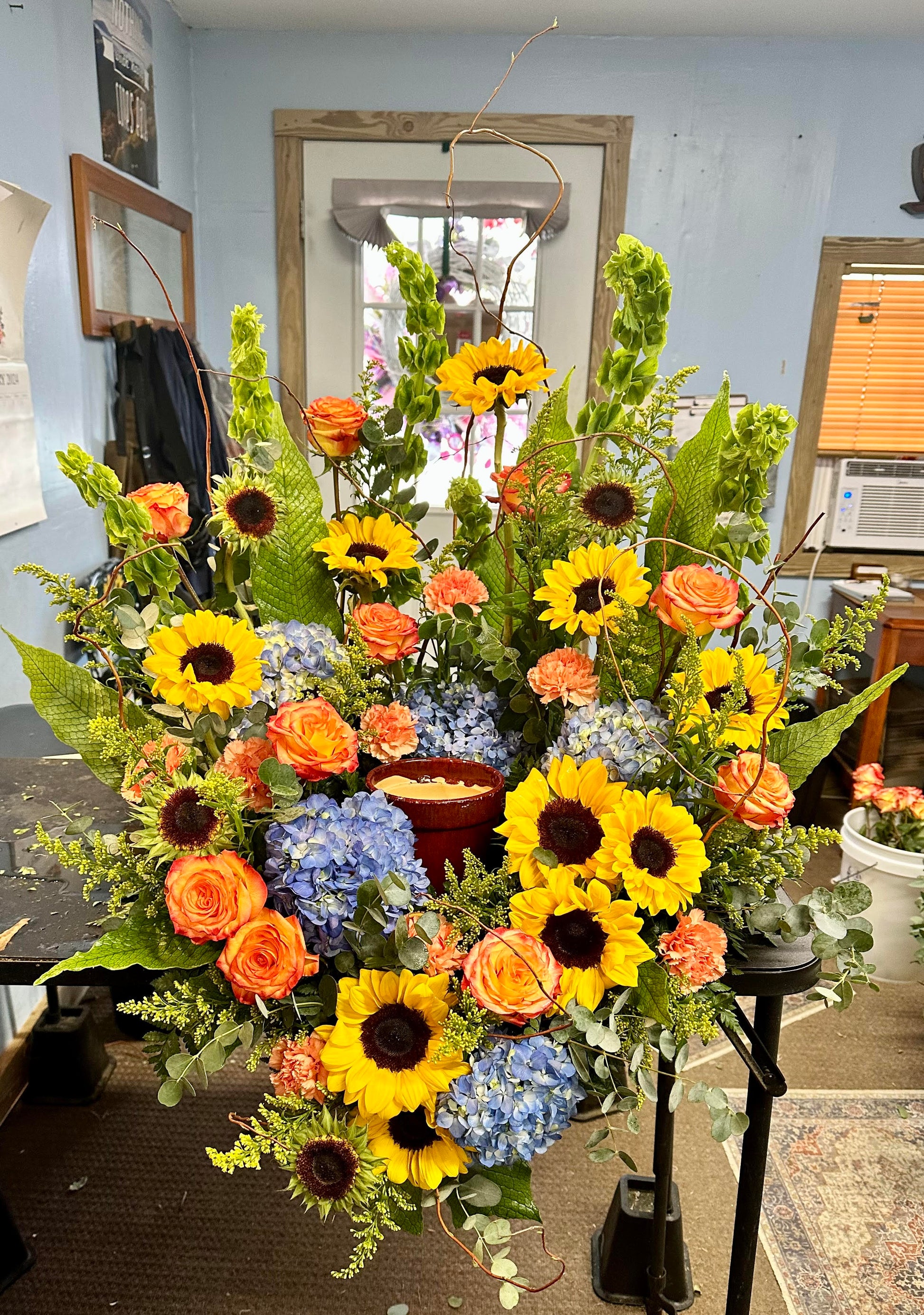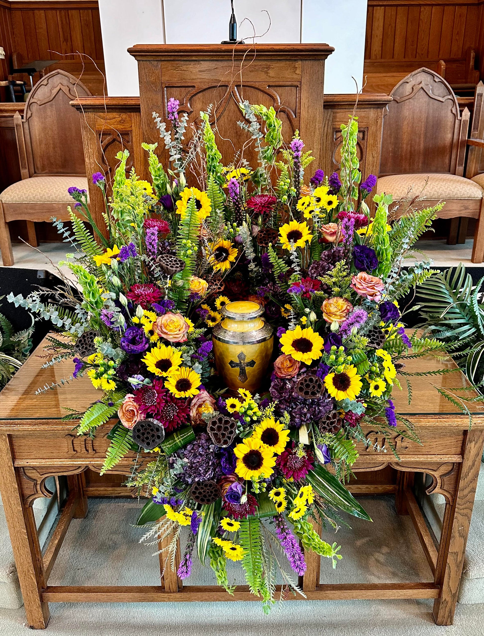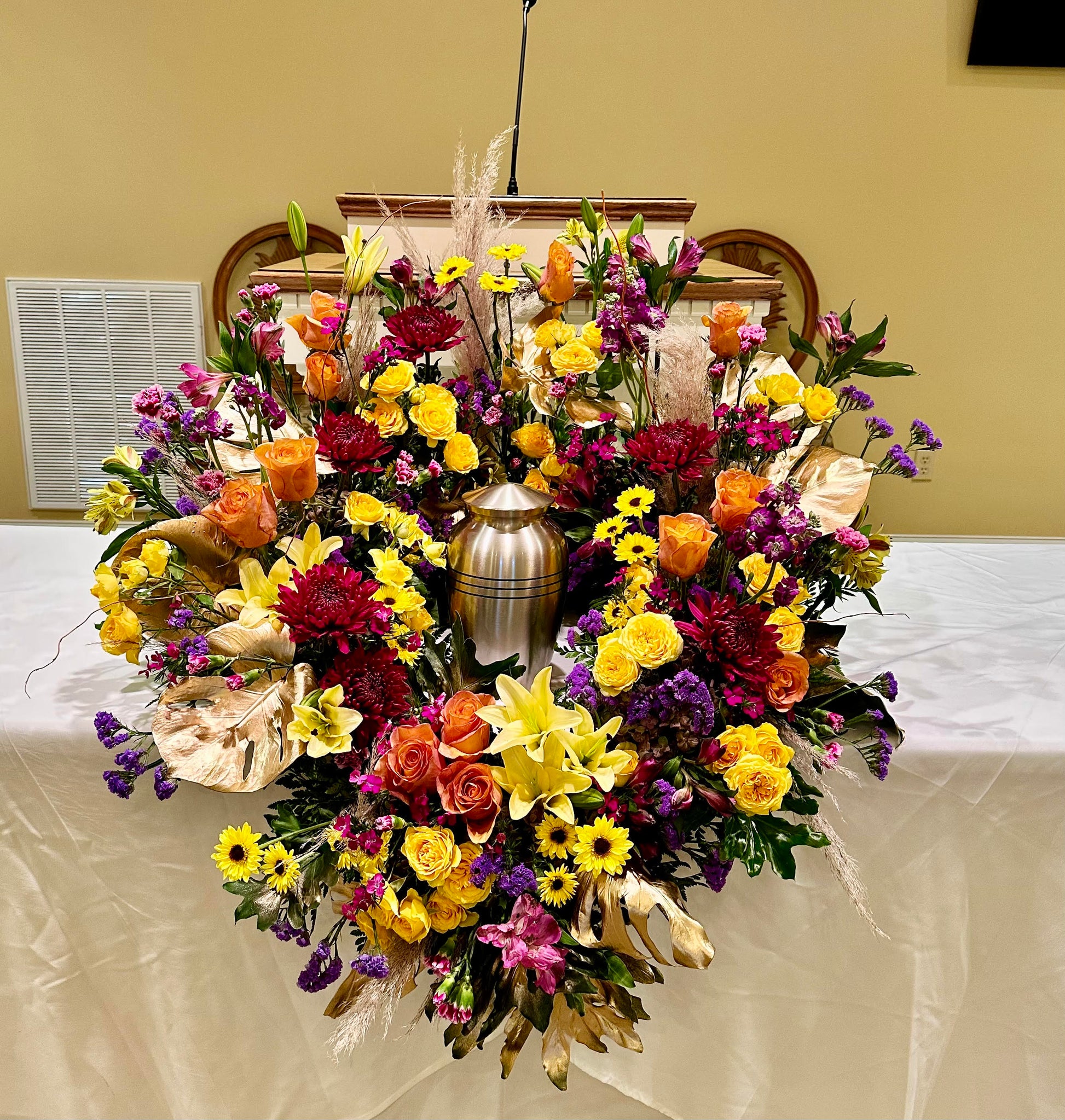 We at Bloomin' Hills Flowers take great pride in what we do, and consider it a true honor when a family request us to provide florals for the service of a loved one. Whether it is a Cremation, or Traditional Service we can help you! Please find below some examples of options that we would suggested for a cremation service. These types of designs range from $200-500.00 To place an order please give us a call at (662) 417 - 0015