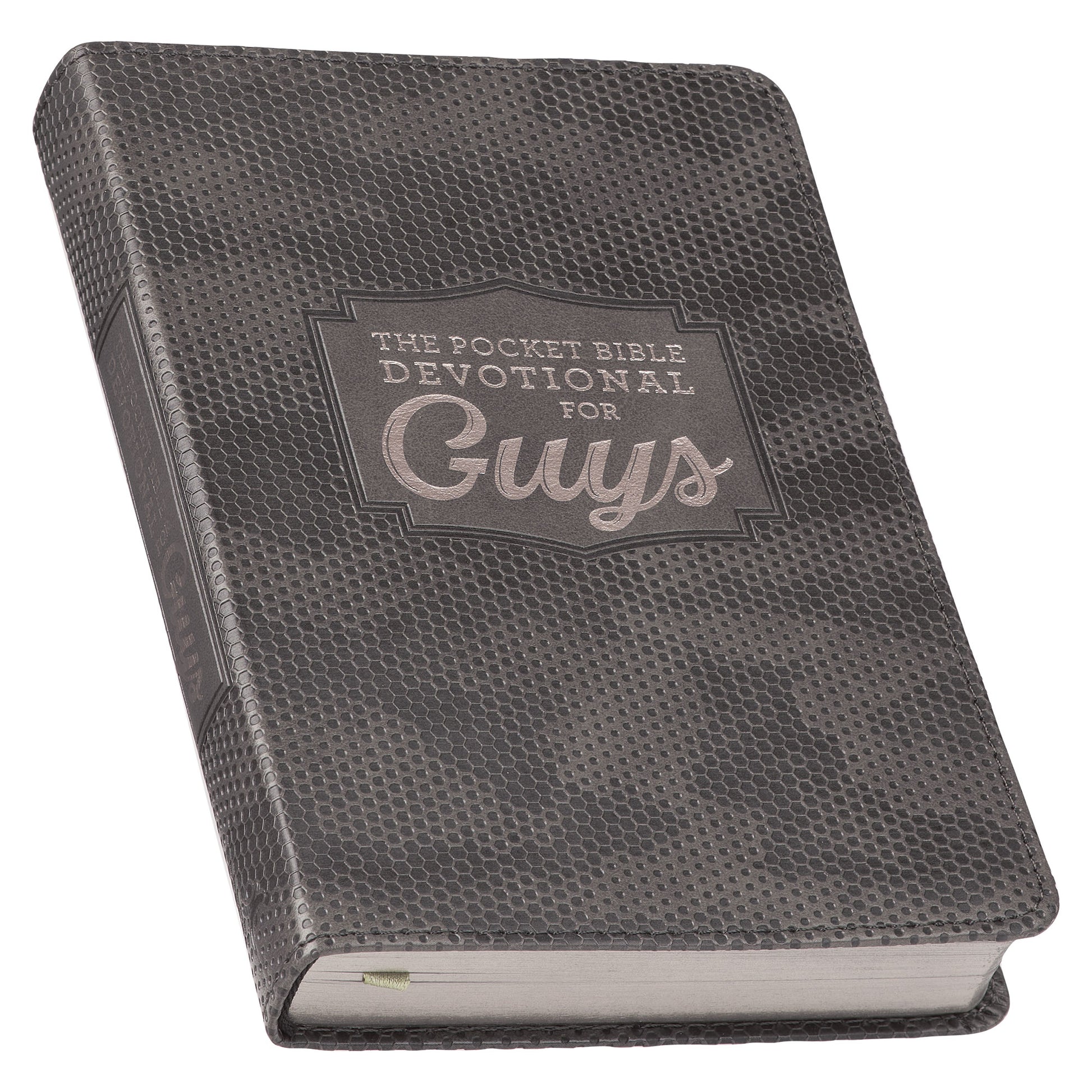 Ignite a love for God's Word in your son's heart when you give the Brown Camo Faux Leather Pocket Devotional for Guys as an edifying birthday or Christmas gift.