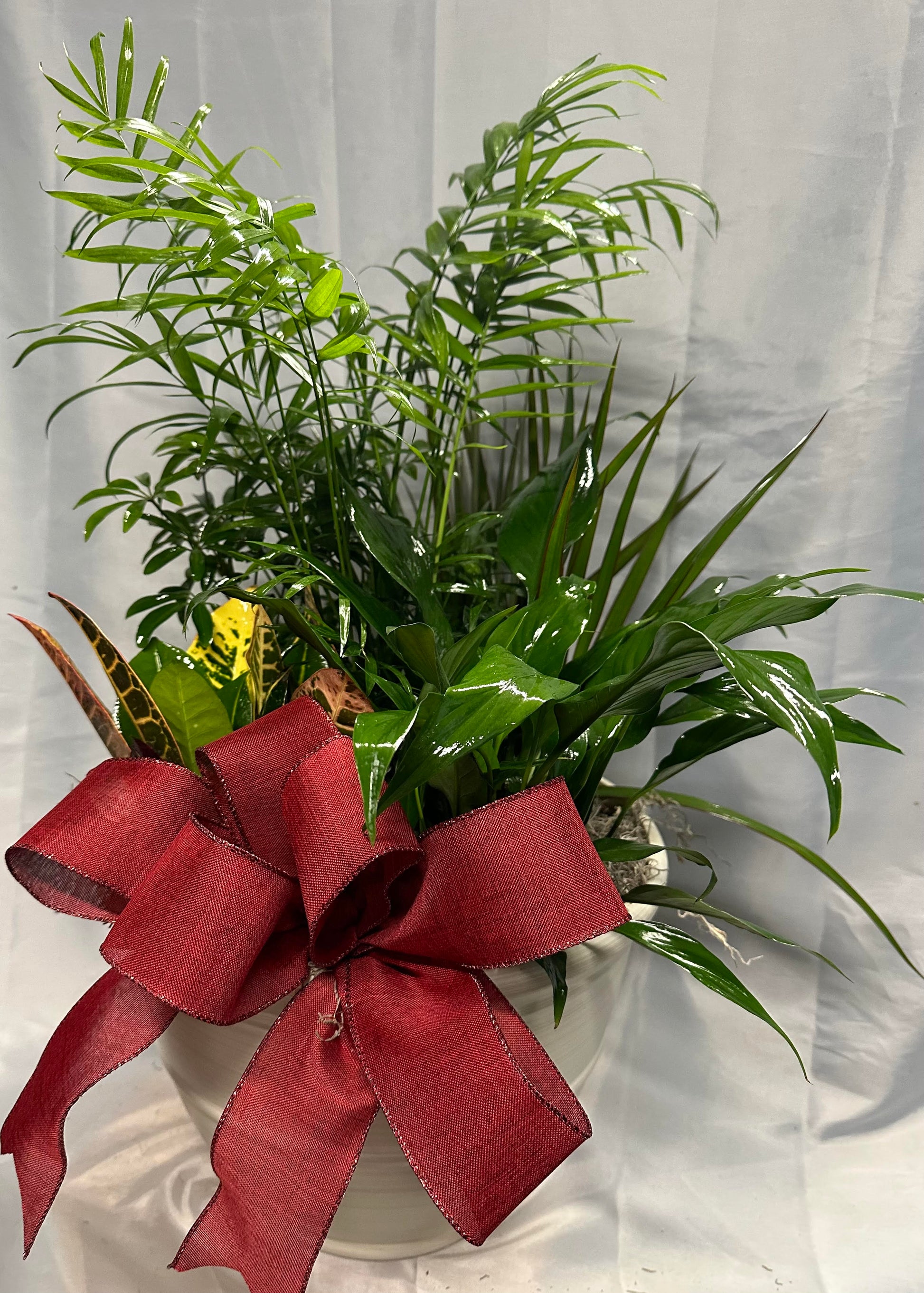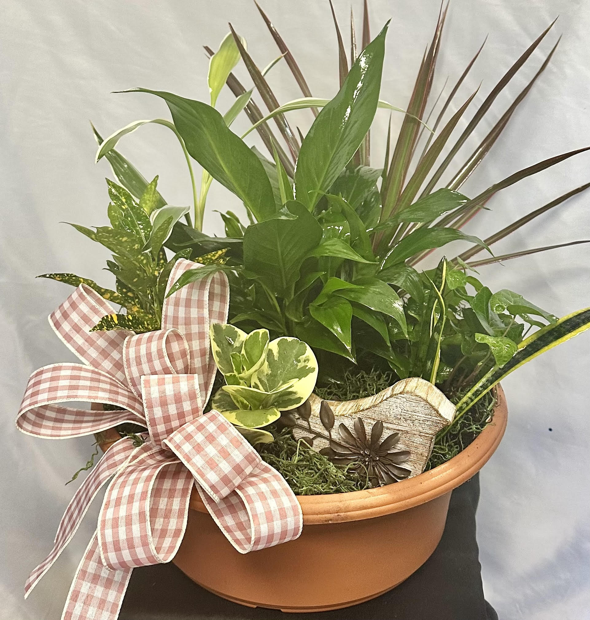 Dish Garden's are a great option for any occasion! They add a beautiful lush green spot in someone's day. Perfect for Birthday, Just Because, Sympathy, ect! Dish Garden's offer a collection of green plants arranged in a nice container to offer a beautiful garden of plants! All of the Green Plants from Bloomin' Hills are planted in nice pots with the correct potting soil for them to thrive & be beautiful, making them a great option for a gift that continues giving! All Plants will be cleaned & leaf polished, Will have Spanish moss around the base of the container, & be accented with a beautiful bow before delivery. Pictures Just for Reference.