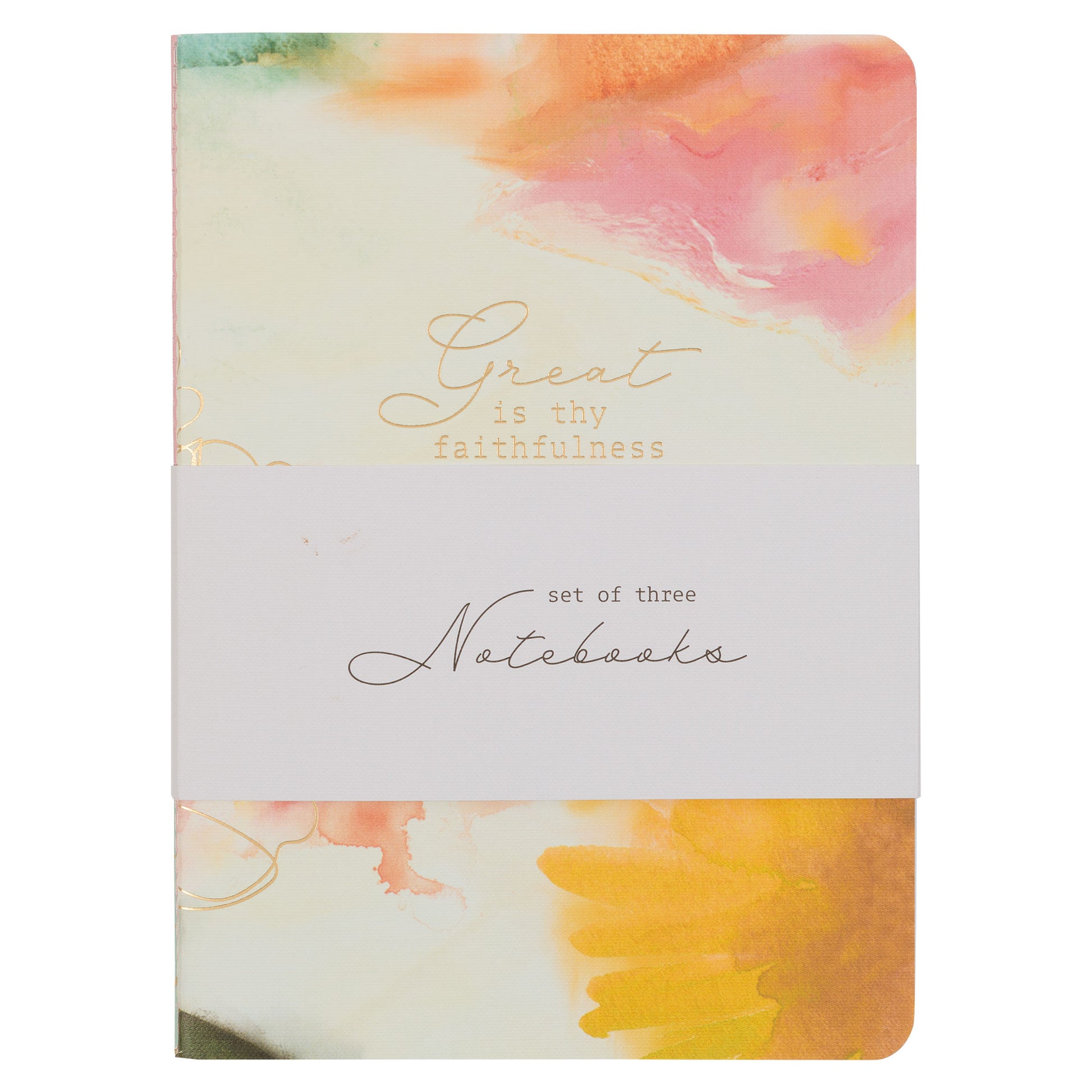 The Faithfulness Pastel Meadow Large Notebook Set is just what you need to record family recipes, jot down shopping lists, write down prayers and sermon notes, or keep track of class lectures. The notebooks in the three-piece notebook set go above and beyond in beauty and design and remind you of God's great faithfulness and never-ending mercy.