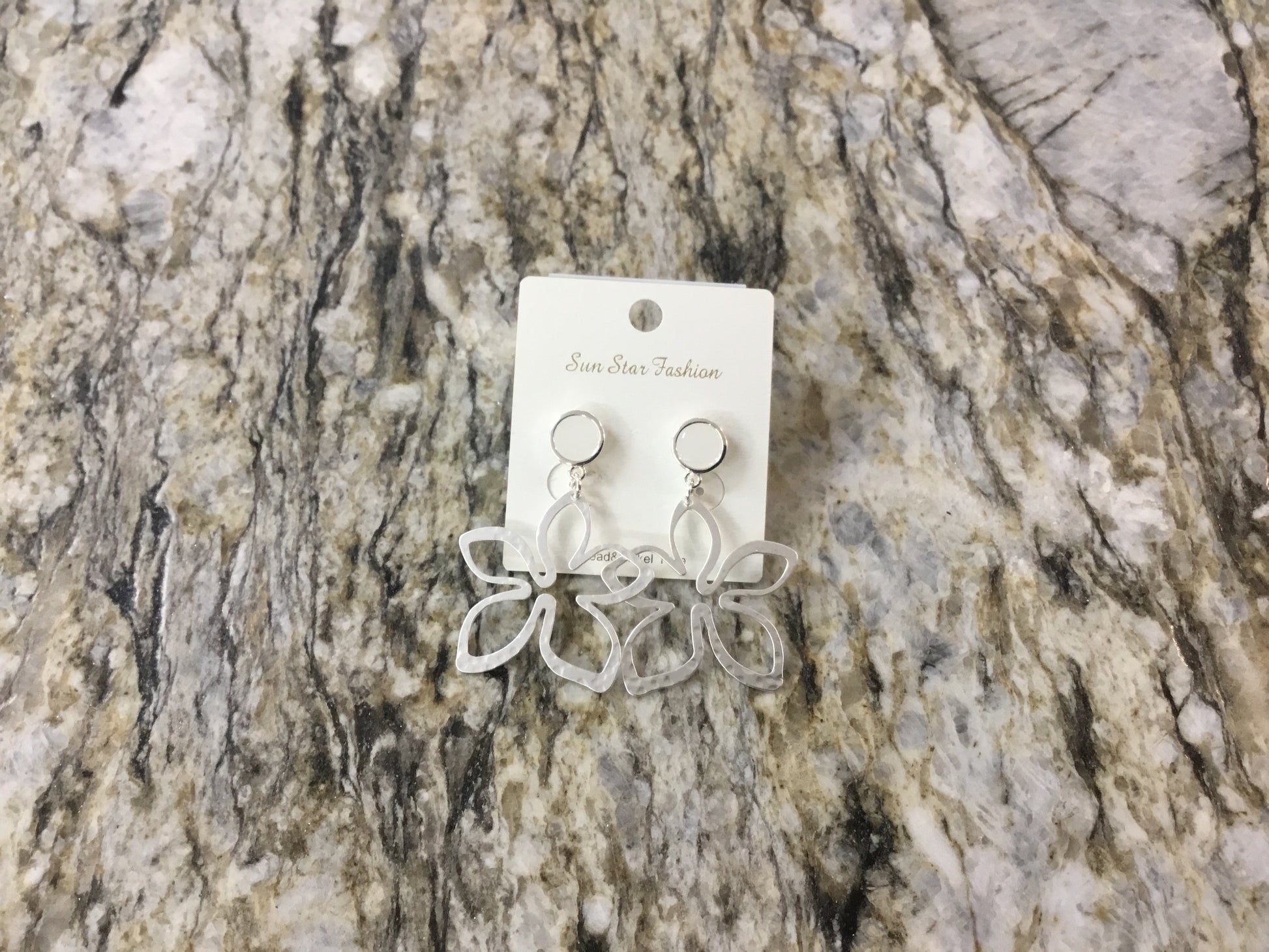 Hammered Flower Silver with White Stone Earrings