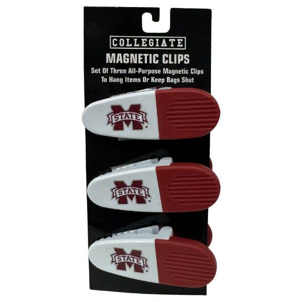 Mississippi State Gear - Set Of Three Magnetic Fridge/Chip Clips - Heavy Magnet & Spring