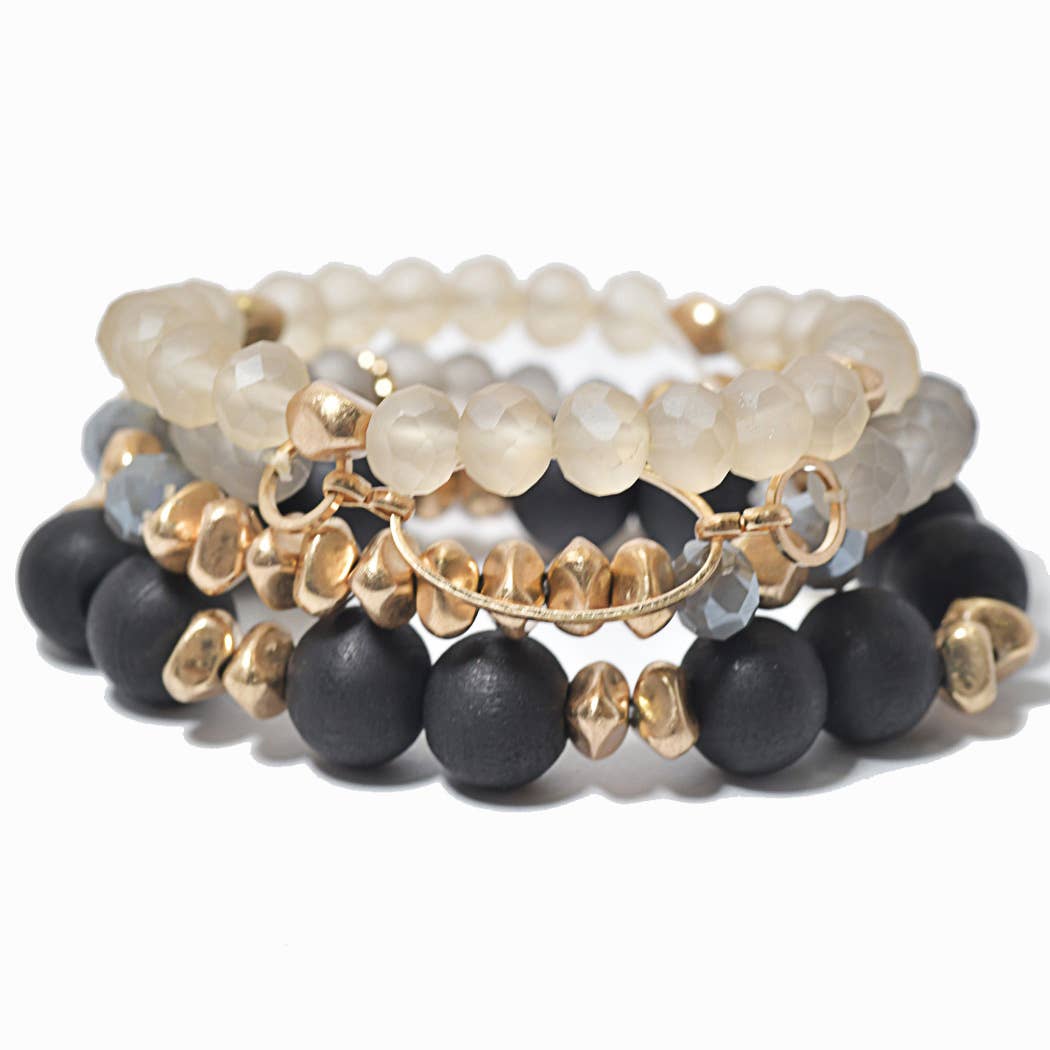 Multi Layered Mix Bead Stretch Bracelet: Black / ONE SIZE