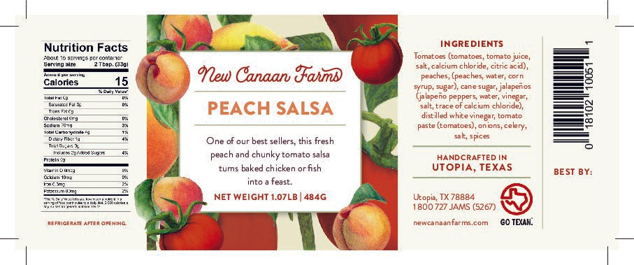 One of our best sellers, this fresh peach and chunky tomato salsa turns baked chicken or fish into a feast.