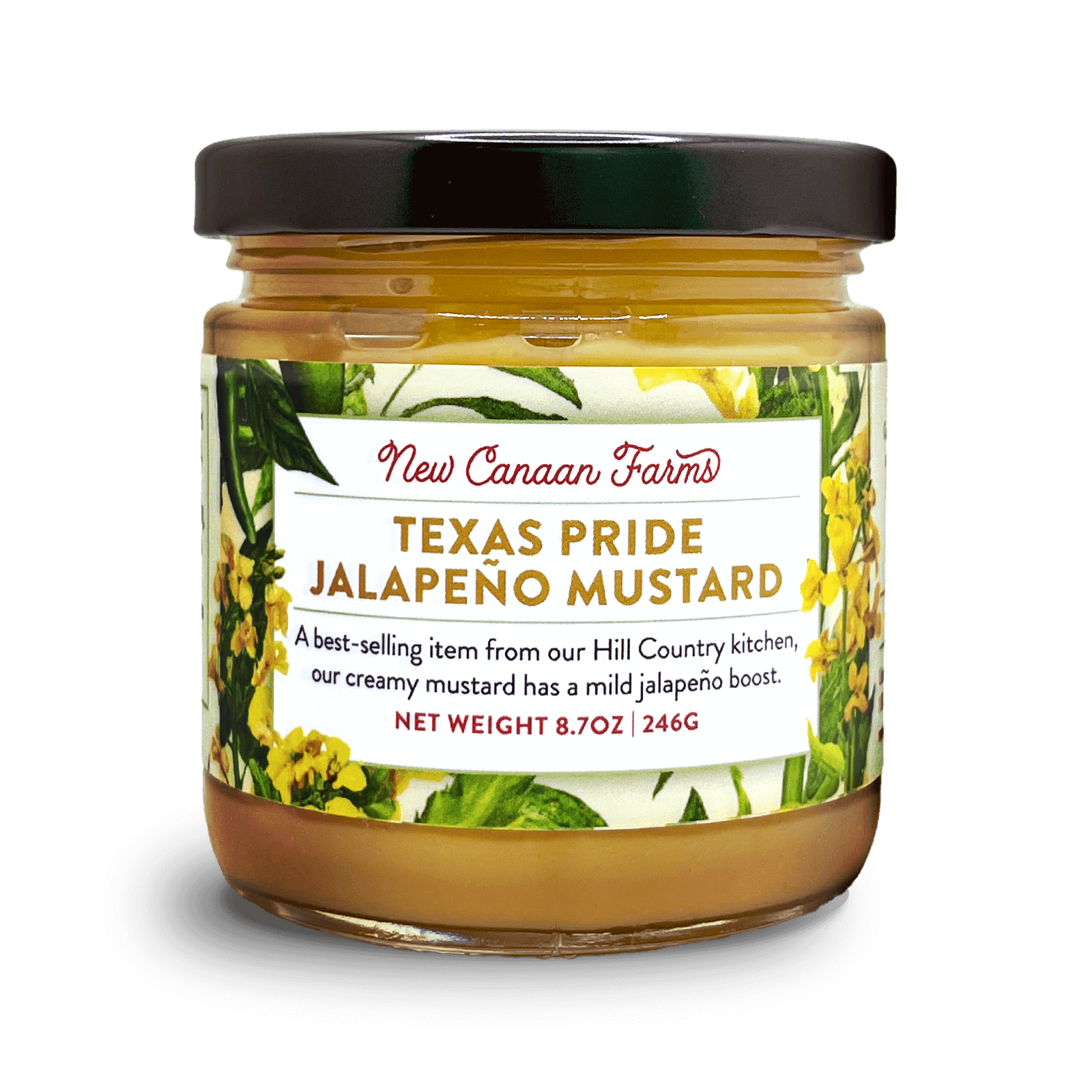 A best-selling item from our Hill Country kitchen, our creamy mustard has a mild jalapeño boost. Great with sandwiches, cheese, and a perfect condiment for any meat dishes.